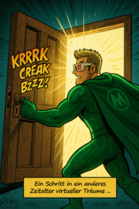 Vorsichtig öffnet Metaverse Man die Tür und tritt ein: